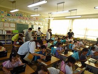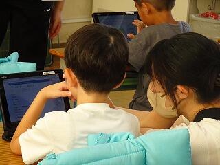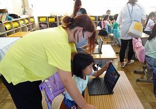 9月19日(火)、1年生のタブレット学習の支援に保護者の方々が来てくださいました。