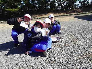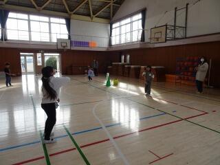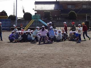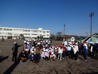 昼休みなので、校庭で遊んでいる子供や校舎内で過ごしている子供が多く見られましたが、地震発生の放送が入ると、校庭の中央に集まって「だんごむし」のポーズをすることができました。