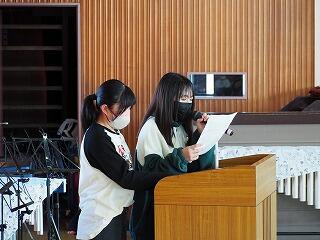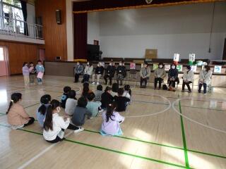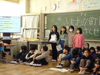 1年間大変お世話になったボランティアの方々に、図書掲示委員会の児童が代表して、子供たちからのお礼の手紙をお渡ししました。ボランティアの皆様、1年間子供たちのために読みきかせをしてくださり、ありがとうございました笑う