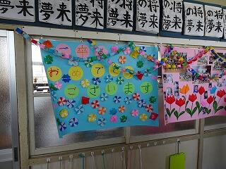 2月20日(火)に全校生による「6年生を送る会」が行われました。前日までに1年生から5年生までが準備した飾りで、当日は朝から校舎全体が6年生を祝福しているかのようです。