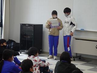 その後、クイズで完成したメッセージを伝え、ふれあい班で作った寄せ書きをプレゼントしました。