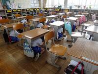放送を聞いて地震発生の後の火災発生を想定した訓練を、真剣に行うことができました。実施後の子供たちの振り返りからは、「机の下にもぐるときは机の脚をしっかりもつことが分かった」「地震が起こったらドアを開けて逃げる道をつくっておきたい」といった声が聞かれました。災害から身を守るための大切な学習となりました。