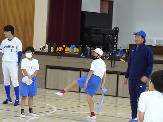 子供たちは、遠くにボールを投げるときの姿勢や体重移動を教わりました。教わったことを生かして、遠くの的に当たるように何度もボールを投げ、熱心に取り組んでいました。授業が終わった子供からは「楽しかった!」や「もっとやりたい!」などの声が多く、有意義な時間となりました。