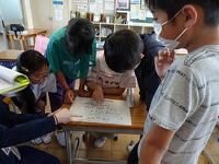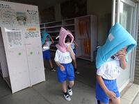 放送を聞いて地震発生の後の火災発生を想定した訓練を、真剣に行うことができました。実施後の子供たちの振り返りからは、「机の下にもぐるときは机の脚をしっかりもつことが分かった」「地震が起こったらドアを開けて逃げる道をつくっておきたい」といった声が聞かれました。災害から身を守るための大切な学習となりました。花丸