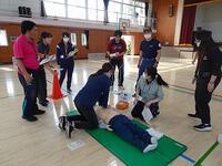 5月15日(水)に「心肺蘇生法」の職員研修を実施しました。栃木消防署藤岡分署の方々を講師に迎え、人形を使って胸骨圧迫やAEDの使用方法等を学びました。その後、学校で子供の事故が発生した際の教職員の動きをアクションカードを使ってシュミレーションしました。あってはならない事故ですが、万が一に備え、教職員一人一人が子供たちの命を救うために真剣に訓練を行いました。