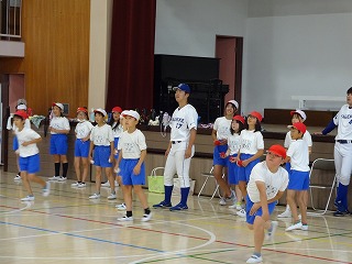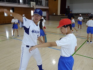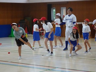 子供たちは、遠くにボールを投げるときの姿勢や体重移動を教わりました。教わったことを生かして、遠くの的に当たるように何度もボールを投げ、熱心に取り組んでいました。授業が終わった子供からは「楽しかった!」や「もっとやりたい!」などの声が多く、有意義な時間となりました。