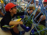 「こんなにつるが伸びてきたよ。」「葉っぱをさわるとふさふさしていたよ。」「つぼみが2こついているよ。」などど、いろいろな発見がありましたひらめきこれからも、さらに成長するのを楽しみに、世話をしましょう笑う