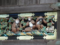 向かいには、有名な三猿の彫刻。「見ざる言わざる聞かざる」