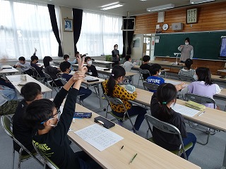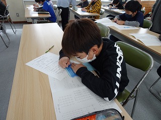 4年社会福祉体験(手話・点字) 投稿日時 : 2022/10/18 三鴨小4年 カテゴリ:4年生 社会福祉体験で手話と点字を行いました。 普段は言葉で表しているものを、手話や点字を使って表しました。 手話体験では、手話で挨拶をしたり名前を表したりしました。また、ひらがなの指文字を学習しました。 点字体験では、「地図」や「走った」などの言葉や自分の名前を点字で打ちました。点字で書かれている絵本や日用品に隠れている点字に子供たちは興味津々でした。 ふじの会、点友会の皆様、本日はありがとうございました。 {{options.likeCount}} {{options.likeCount}}