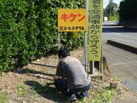 7月16日(日)に、PTA生活安全部の活動として、「キケン」看板の設置をしました。