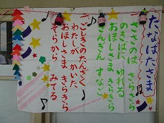 星に願いを(1年生) 投稿日時 : 2023/07/07 三鴨小管理者 7月7日(金)、今日は七夕です。 朝の会で「たなばたさま」を歌いました 給食は「たなばたメニュー」をおいしくいただきました。 短冊に一人一人が願い事を書いて、イラストの竹笹に貼り付けて飾りました。 「ぷうるでおよげるようになりますように」 「ぴあのがじょうずにひけますように」 「かぞくがながいきしますように」 「かぜをひきませんように」 「かんこくのおかしがたべられますように」 みんなの願いが叶いますように {{options.likeCount}} {{options.likeCount}}