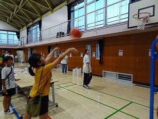 体育館では「射的」「輪投げ」などのゲームで福引き券をゲットして景品と交換
