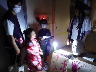 校舎では、夜の校舎を探検で先生たちがこわーいお化け屋敷にご招待