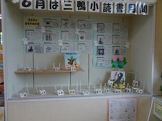 「ふれあい読書」の他にも、「読書スタンプラリー」「先生のおすすめの本」など、図書・掲示委員会の楽しい企画により、図書室を利用する児童が増えています。6月は雨が多く室内で過ごす時間が増えることから、読書の機会がも増えるように「三鴨小読書月間」としています。