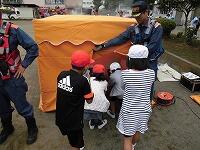 職員4名による消火訓練、児童全員の煙体験も行われました。