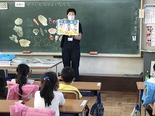 1年生の食育の授業のめあては「やさいとなかよしになろう」でした。
