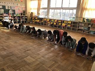 全員同じ方向を向き、床の汚れを一生懸命落としました。