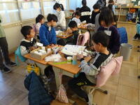 最後に、2年生から1年生へプレゼントを渡しました。心を込めて作った中で、一番よく跳ぶ「パッチンジャンプ」です。また、松ぼっくりで作ったクリスマスツリーも渡しました。1年生から笑顔で「ありがとう。」と言われた2年生たちは、とてもうれしそうでした。