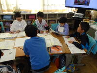 スーパーマーケット見学の体験を生かしながら考えていました。栃木市の副読本や、社会の教科書からも情報を集めて、スーパーマーケットのお客さんを集める工夫を、自分でよく考えながらまとめていました。
