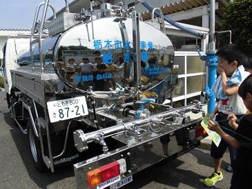 購入したばかりの給水車を見せていただき、そこから作られたばかりの水をごちそうになりました。