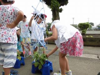 と、その前に、まずは1年生のアサガオのお世話のお手伝い。