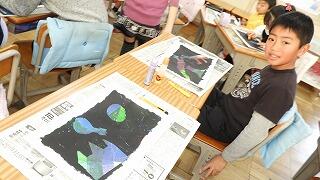 年末に取り組んだシール版画。シールをはがしていよいよ完成です。