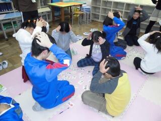 「Hand on your head.」で始まるカルタのゲームが展開されました。