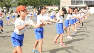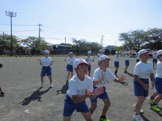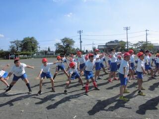 5時間目、4~6年生のソーラン節の練習が初めて校庭で行われました。