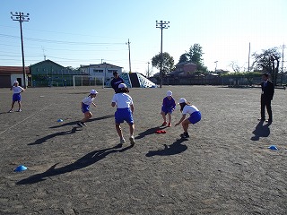 子供たちは、グループ走を行ったり玉集めと走りを組み合わせた運動、リレーを行いました