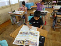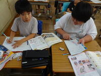 スーパーマーケット見学の体験を生かしながら考えていました。栃木市の副読本や、社会の教科書からも情報を集めて、スーパーマーケットのお客さんを集める工夫を、自分でよく考えながらまとめていました。