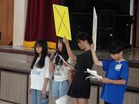 クラスのみんなで学校のどこが体験の場所にふさわしいかを相談しました。最初は、少し怖いので「体育館がいい。」との意見でまとまりました。