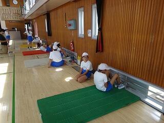 次は、いよいよ校舎内を歩くことにしました。1階の体育館から、3階の4年教室まで歩きます。いつも歩き慣れている廊下や階段ですが、スタートの数段の階段でもとても時間をかけて歩いていました。
