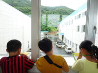 ペアで交代しながら、階段の上りを体験しました。教室で一度呼吸を整え、次は教室から体育館を目指します。