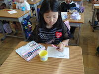本日、6年生は講師の方々に来ていただき、「己書」を行いました。