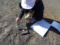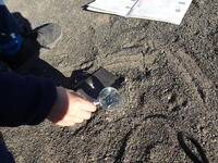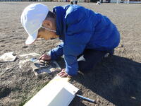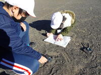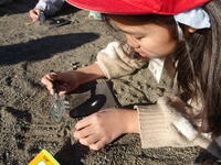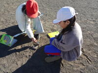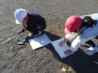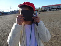 集中して光りを集めています。友達が「うまくいかないな。」とつぶやくと、「太陽の光が虫眼鏡に当たるように傾けるんだよ。」と優しく教えていました。