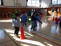 自分たちでカラーコーンを使って、障害物を置きました。
