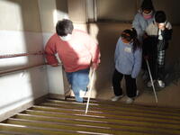 階段の上りです。白杖と手すりを使って、一段一段をゆっくりと確かめながら歩いていました。