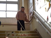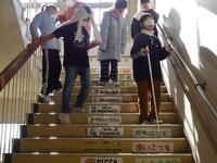 次は、いよいよ校舎内を歩くことにしました。1階の体育館から、3階の4年教室まで歩きます。いつも歩き慣れている廊下や階段ですが、スタートの数段の階段でもとても時間をかけて歩いていました。