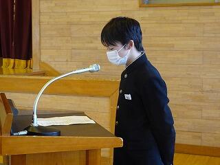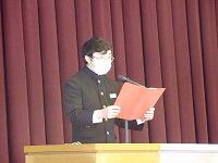 始業式では、進級した2・3年生の代表生徒がこれから始まる新学期の抱負を述べました。