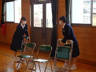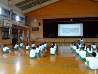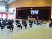 次期生徒会役員を決定するための、役員選挙が行われました。会場には、来年度の入学予定である小学校6年生と全校生徒が集いました。