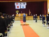 入学式では、新入生の元気いっぱいな返事が体育館に響きわたりました。