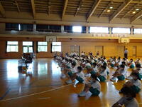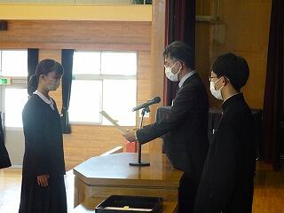 集会では、各クラスの学級委員長、学級副委員長が校長先生から任命されました。