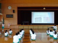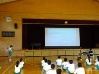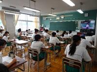その他の生徒は、各教室でモニター越しに鑑賞しました。