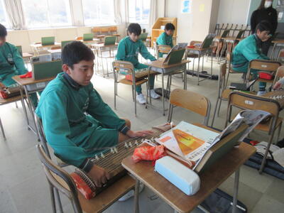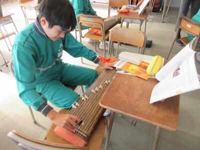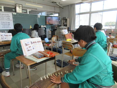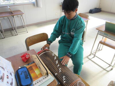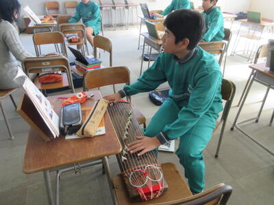 12月5日(金)、1年生が日本の伝統楽器であるお琴に触れながら、和楽器の魅力を初体験しました。