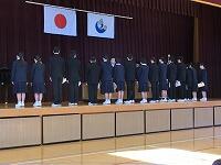 昼休みの体育館では応援団の生徒が練習をしていました。