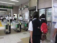 早朝の栃木駅。修学旅行の出発式のようすです。