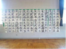 今、皆川中学校の廊下には、冬休みの課題だった「書き初め」が展示されています。今年は「立」が共通課題で、1年生が「文武両立」、2年生が「新春立志」、3年生が「自己確立」と書きました。