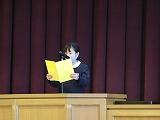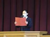 教頭先生の講話、代表生徒の作文発表、生徒一人一人の「誓いの言葉」発表がありました。