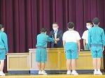ロードレース大会と図書関係、部活動関係などで優秀な成績を収めた生徒たちが表彰を受けました。