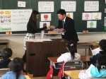 また、小学校1年生で英語の交流授業が行われました。果物が描かれたカードを使って、楽しく英語に親しめたようです。